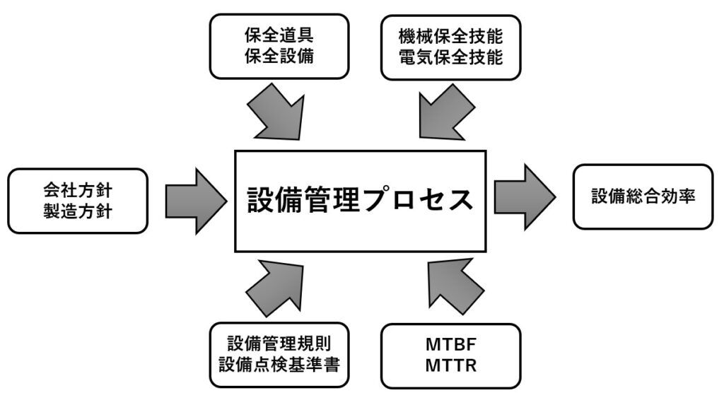 設備管理を1つのプロセスと考えると一般的には下記のようなタートル図が考えられます。