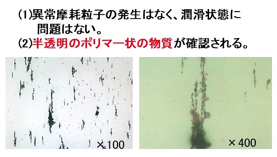 ①異常な摩耗粒子の発生はなく、潤滑状態に問題はないと考えられます。
