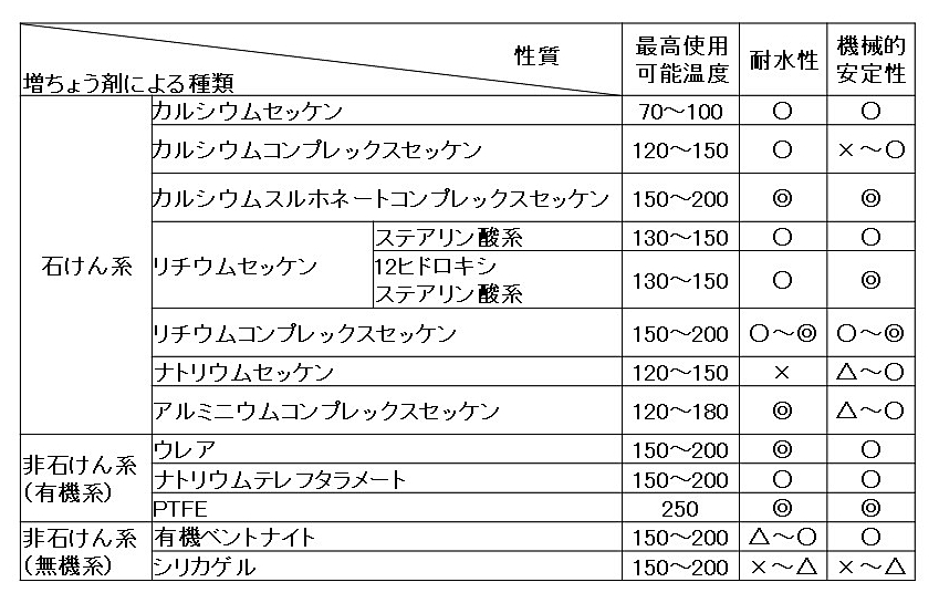 (2)増ちょう剤の種類と特徴