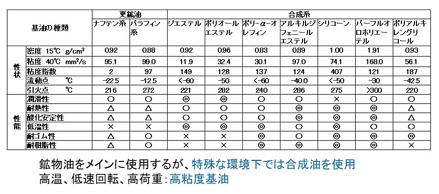 (3)基油の種類と特徴