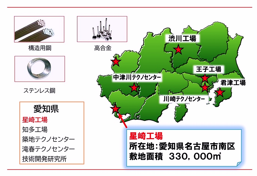 当社は全国9拠点で、工具鋼やステンレス鋼、構造用鋼などの特殊鋼を生産しており、私が所属する星崎工場は、愛知県名古屋市に位置し、特殊鋼の熱間、冷間圧延や切削加工鋼材を生産している(図表-2)。