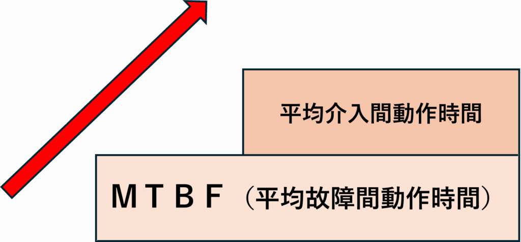 レベル2:介入間動作時間(故障に加え、点検・整備など設備の不可動時間を除く動作時間の平均)