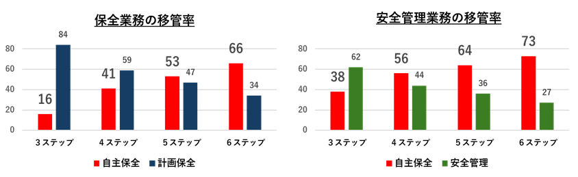 自主保全への業務移管率を主な成果指標として管理する企業も少なくありません。これらはとくに海外企業で良く行われる取組みの一つであり、部門間の境界を越えた取り組みが関係するため、経営トップの積極的な関与が重要となります。