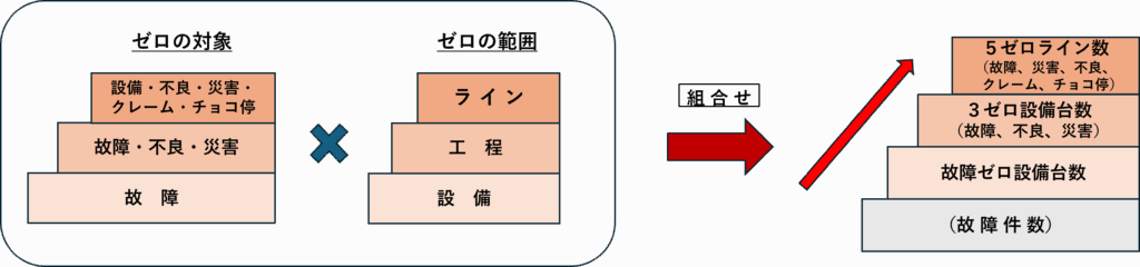 「ゼロの対象」×「設備の範囲」の組合せで指標を設定します。